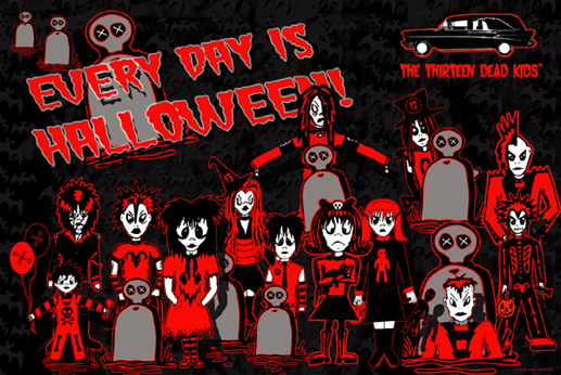 "The Thirteen Dead Kids is in NO WAY insinuating that the death of children is acceptable. The Thirteen Dead Kids is simply a fun concept inspired by the likes of The Munsters, The Addams Family, and cartoons."